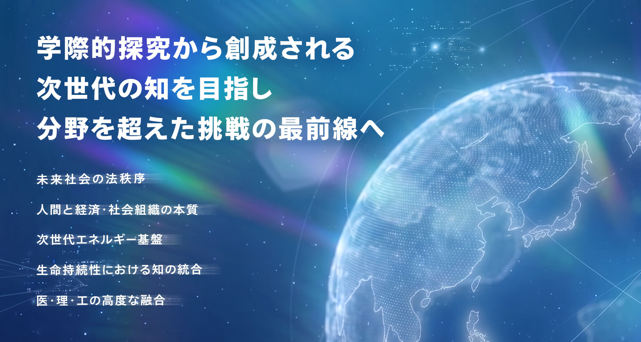 学際創成学術院は、単独の学問分野では解決できない地球規模課題に挑み、学問の壁を超えた知の統合と社会実装を推進します。